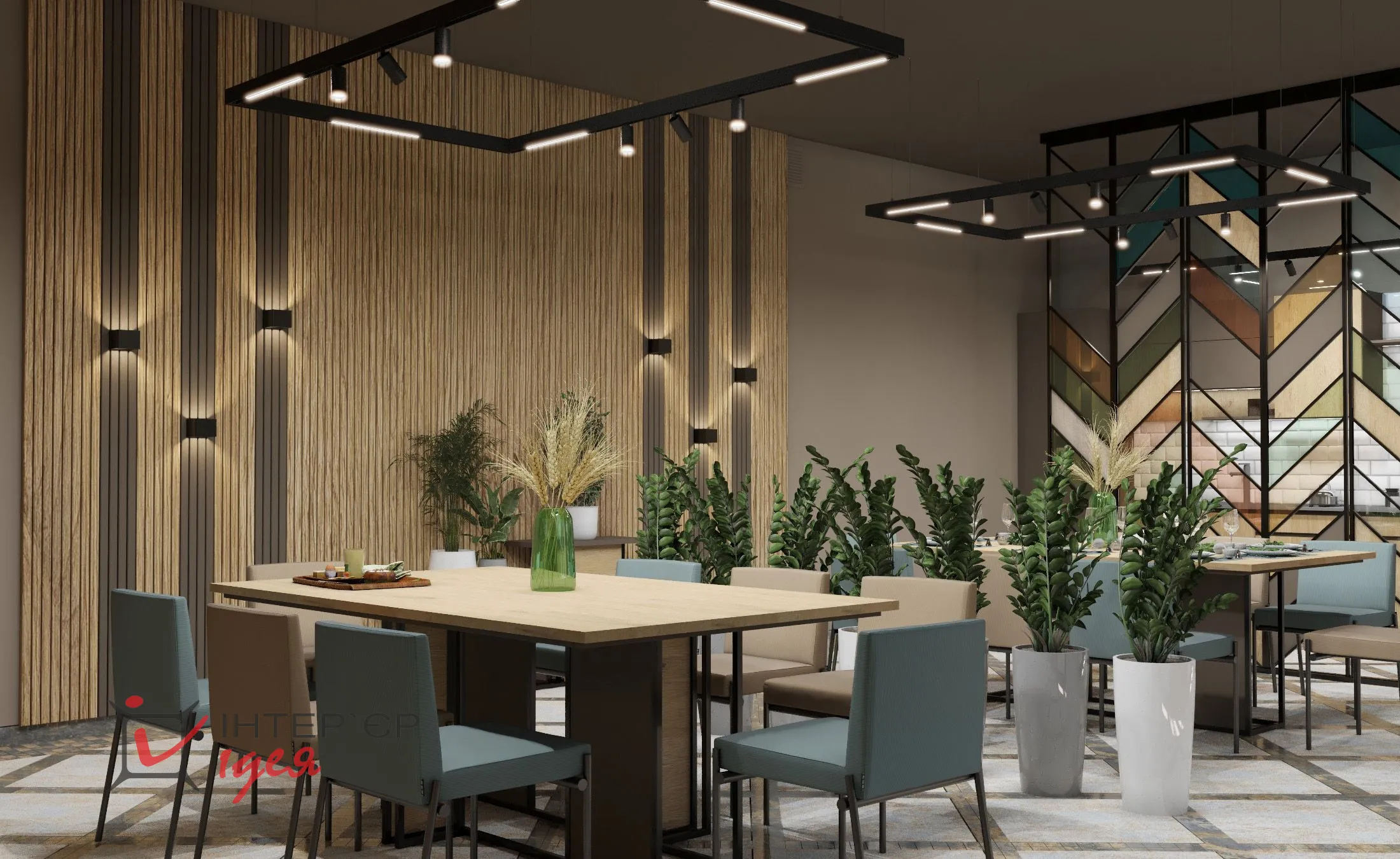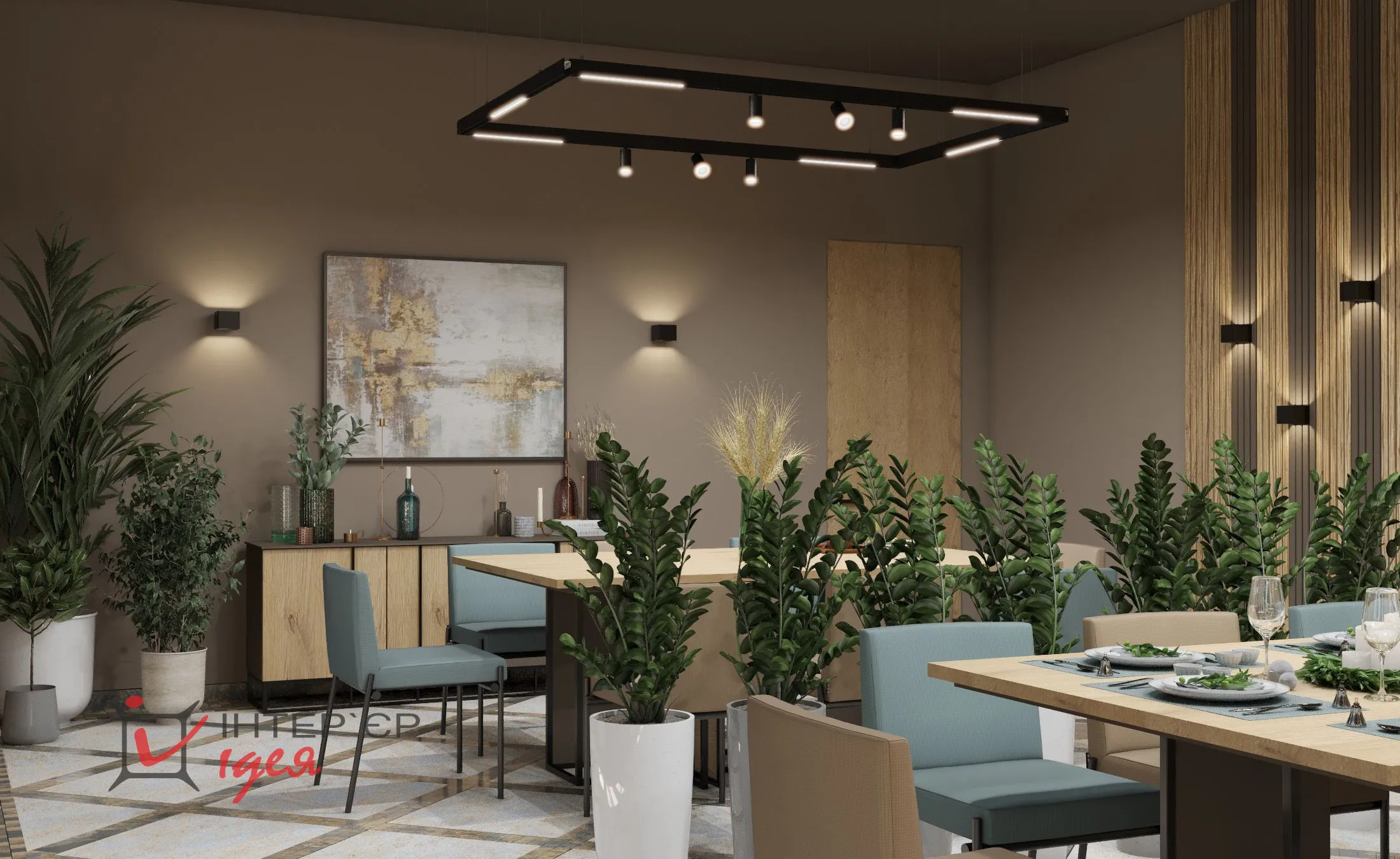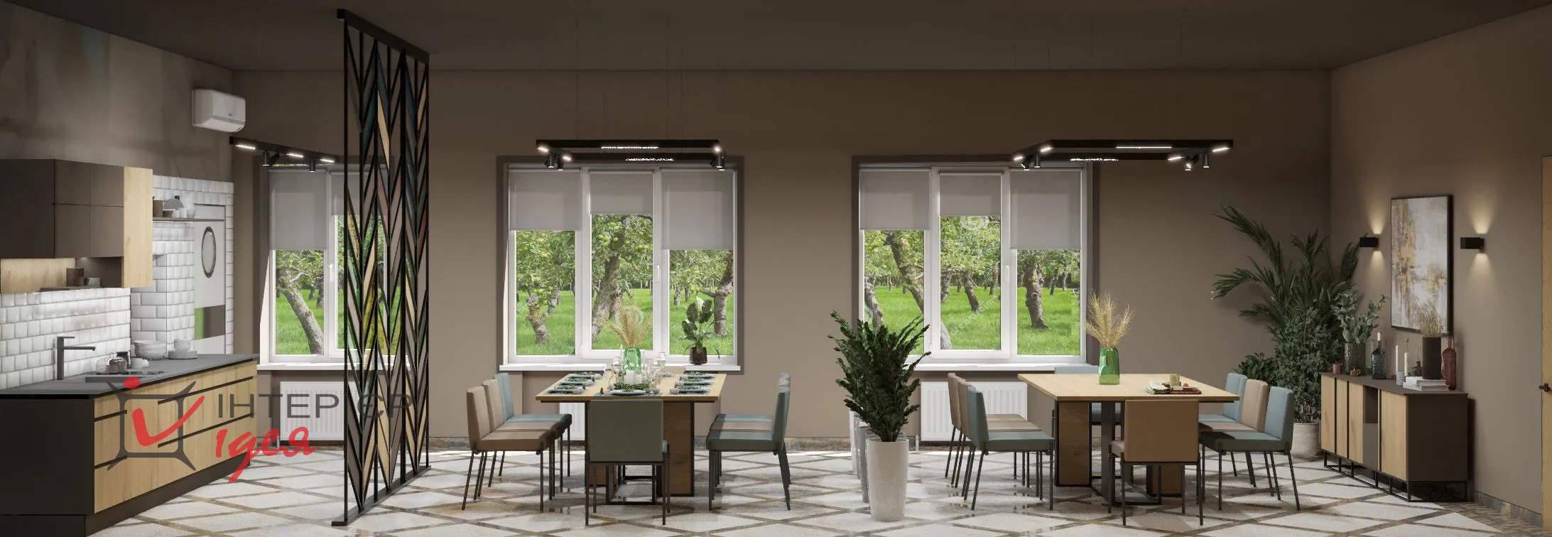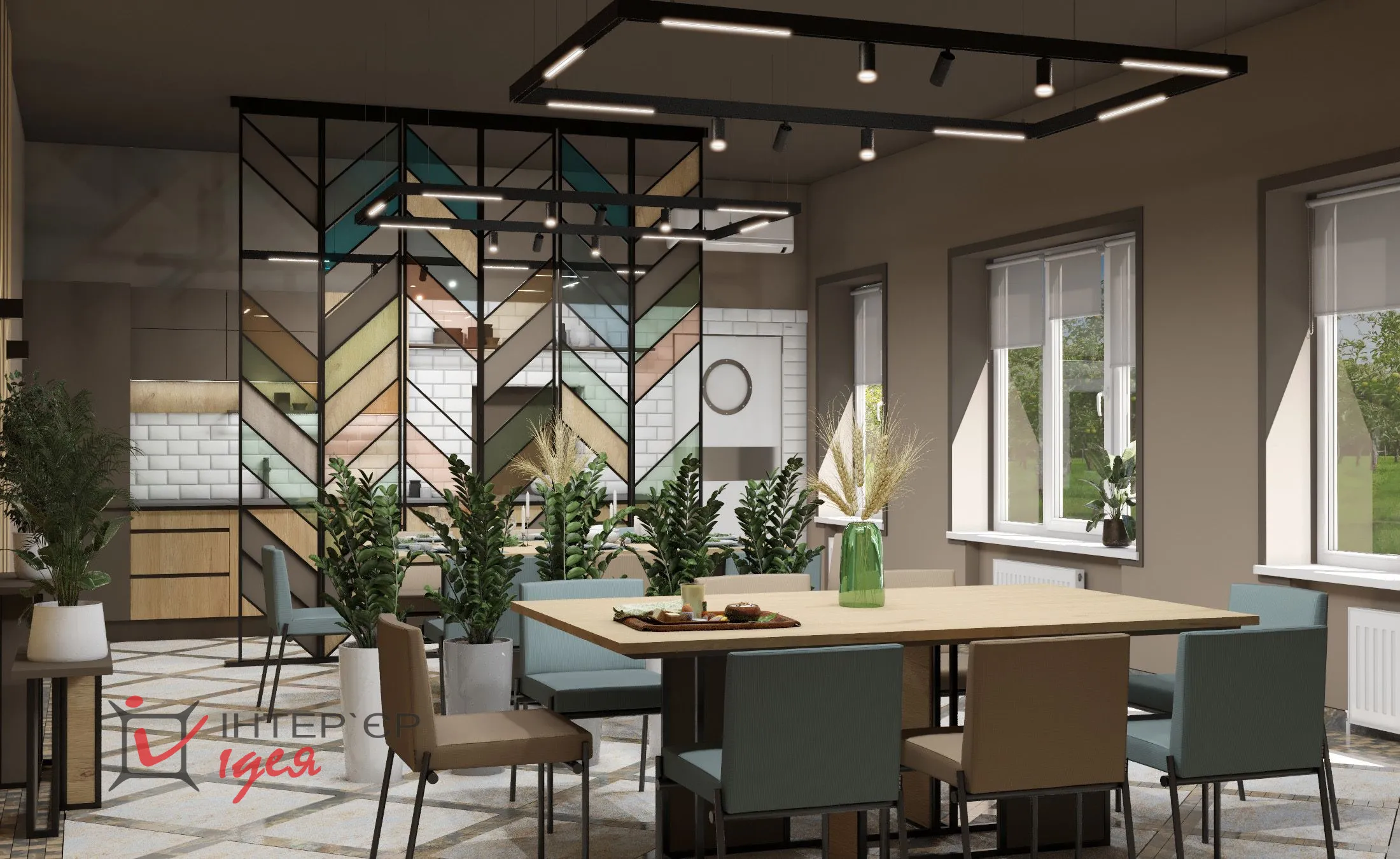 З коридору можна потрапити в їдальню в якій потрібно було створити комфортний та зручний простір для розміщення працівників за обідньою перервою.