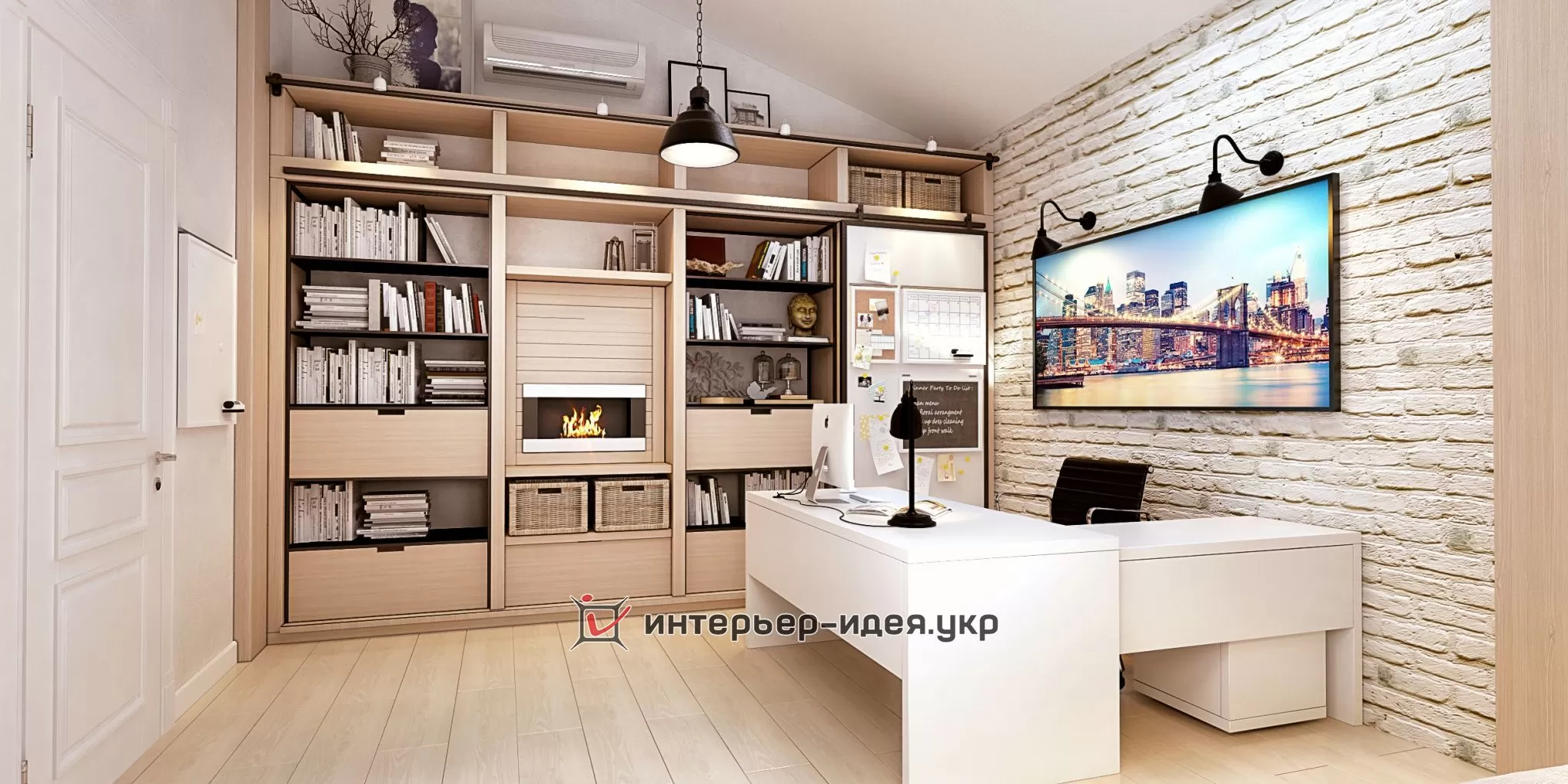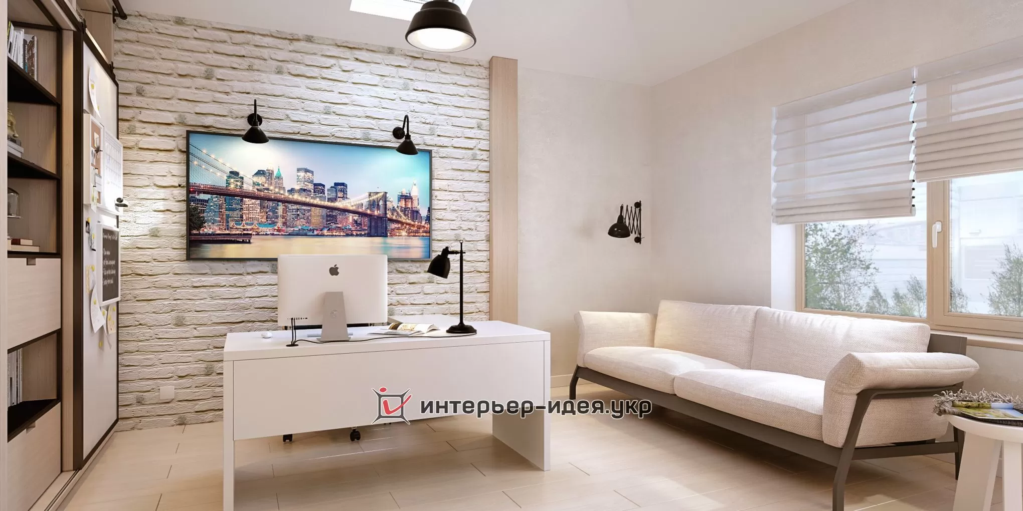 Дизайн кабінету з красивою білою цегляною стіною, м. Черкаси