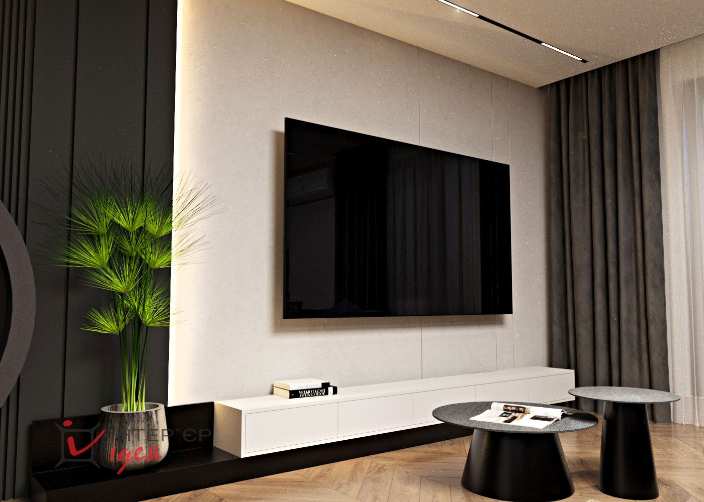 Для зберігання в кімнаті виділено декілька зон: у передпокої- шафа для верхнього одягу з відкритими і закритими секціями; у вітальні - довга тумба під телевізором; в кухні - кухонні шафи, для зберігання всієї необхідної техніки згідно технічного завдання.