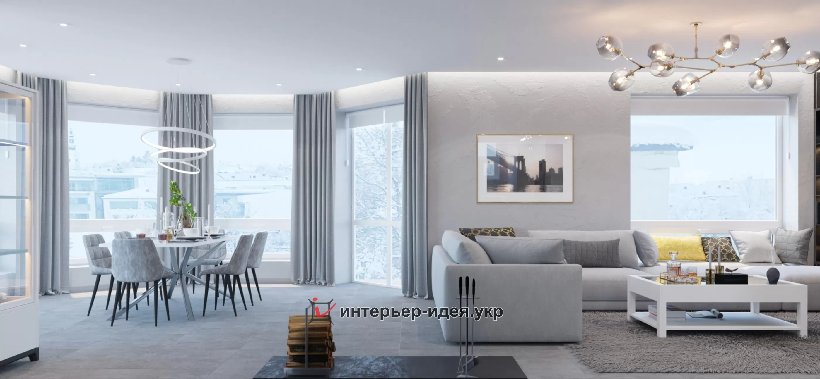 Проект був розроблений в сірих і темних тонах - ці відтінки візуально розширюють приміщення і збільшують простір, а також свідчать про вишуканість смаку господарів.