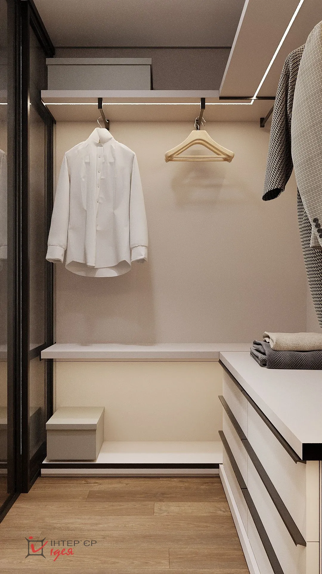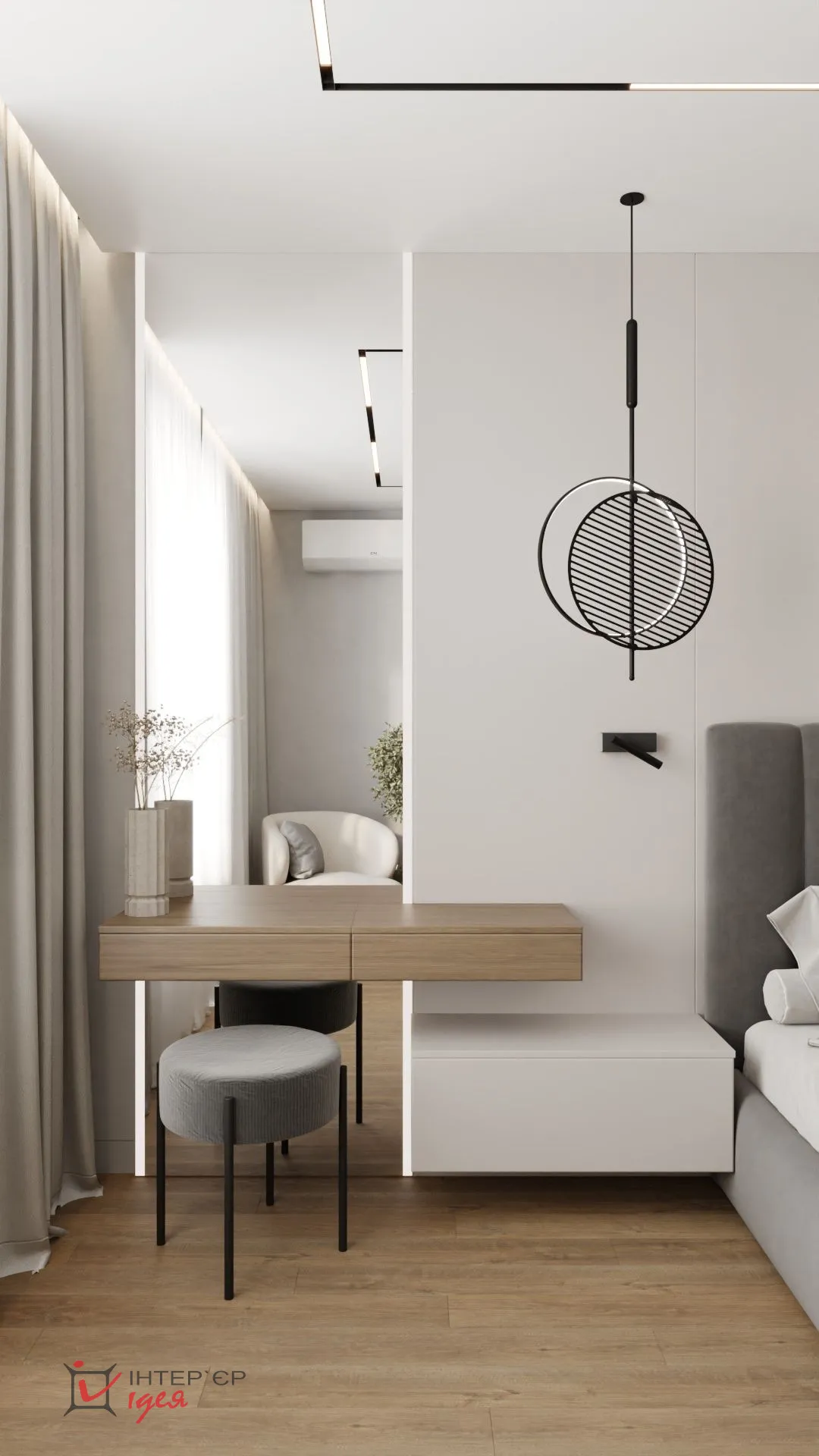 Пастельні відтінки та нейтральні тони в оформленні стін і меблів у поєднанні з дзеркальними поверхнями сприяють максимальному проникненню природного світла в приміщення вдень, створюючи атмосферу спокою та гармонії.